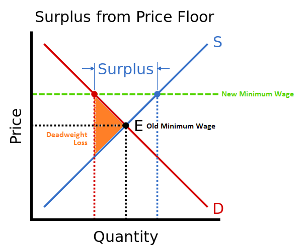 A neoclassical economist, arguing from such a graph, might say that minimum wages are bad because they create "dead weight" in the labour market.